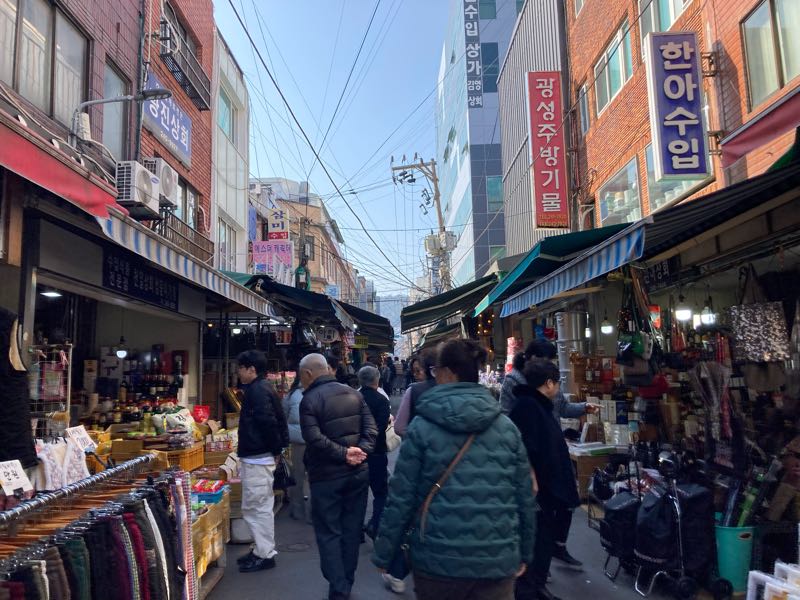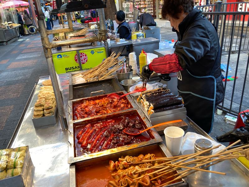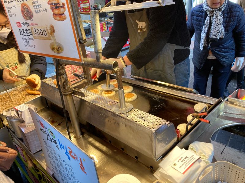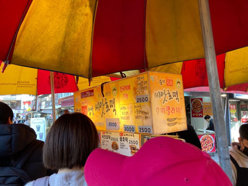 お腹空いたからチャガチル駅で降りました。広い市場なんですが、同じもの売ってる屋台がいくつも並んでて、私はトッポギが食べたかったけど、どこにしようか迷います。