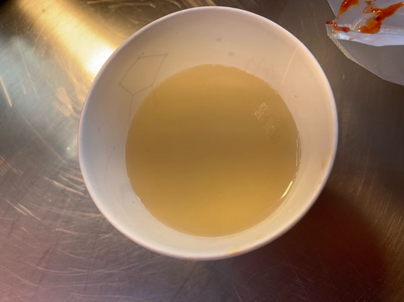 スープがわりのおでんの出汁。おでんはさすがに食べれませんでした。