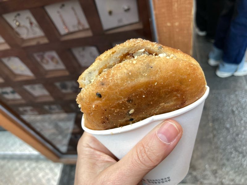 近くのホットック屋台。並んでると食べたくなります。生地が油どっぷりで、中に砕いたナッツをたっぷり入れます。
