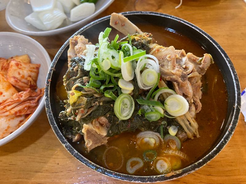 テンジャンチゲ、みそ汁。ここのは納豆の味がします。具沢山で最高です!
