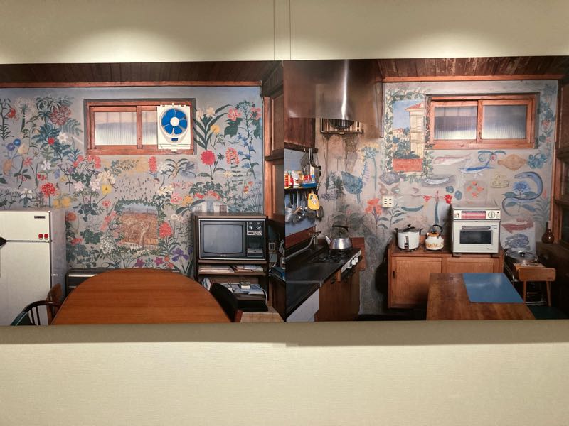 香月家の台所。壁が殺風景だから絵を描いたそうです。