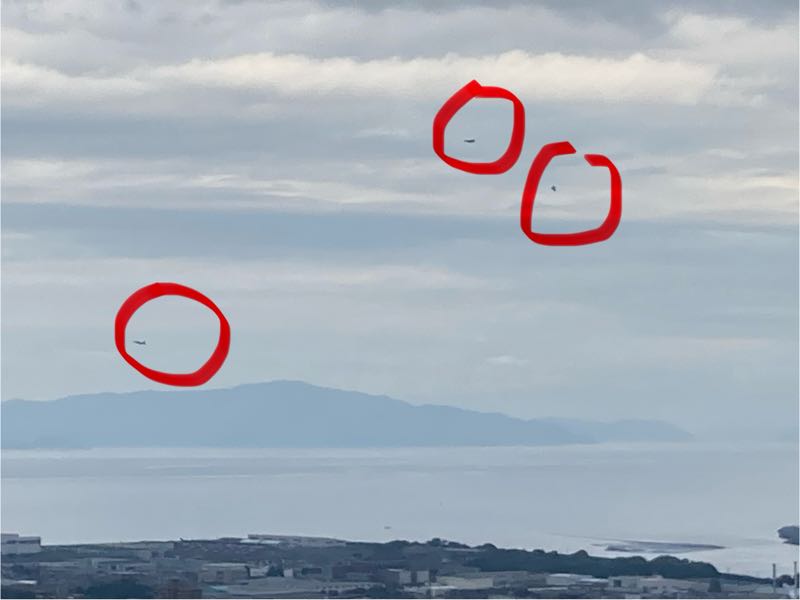 平家山からは点でしか見えない、空母艦載機ですが、轟音はしっかり聞こえます。夕方4時30分までってあったけど、この日しっかり遅い時間までうるさかったです。